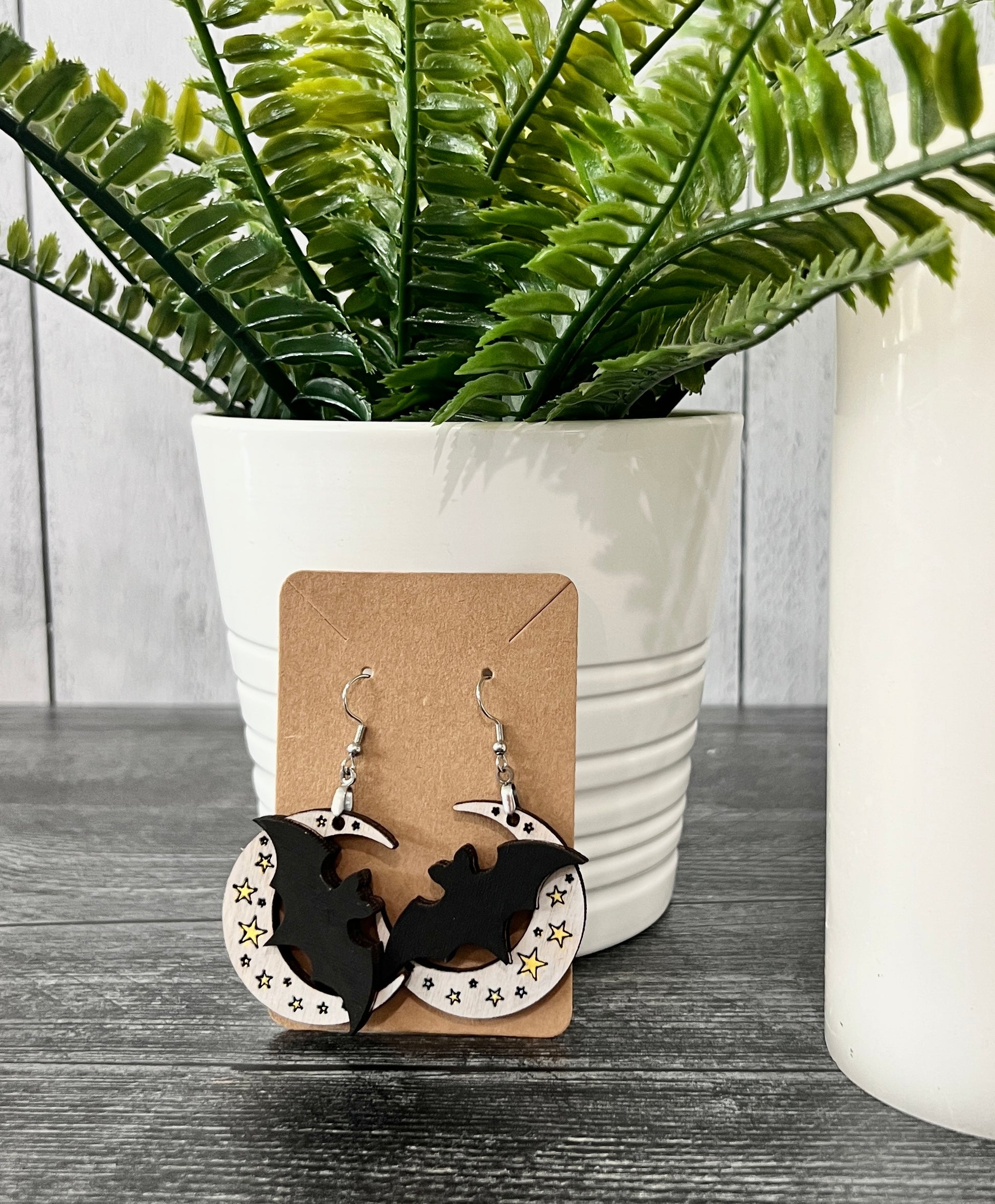 Crafted with meticulous attention to detail, each bat earring features a mesmerizing silhouette of a sleek, swooping bat in flight. The intricate design captures the essence of these mysterious creatures, making them a fitting addition to your Halloween attire.