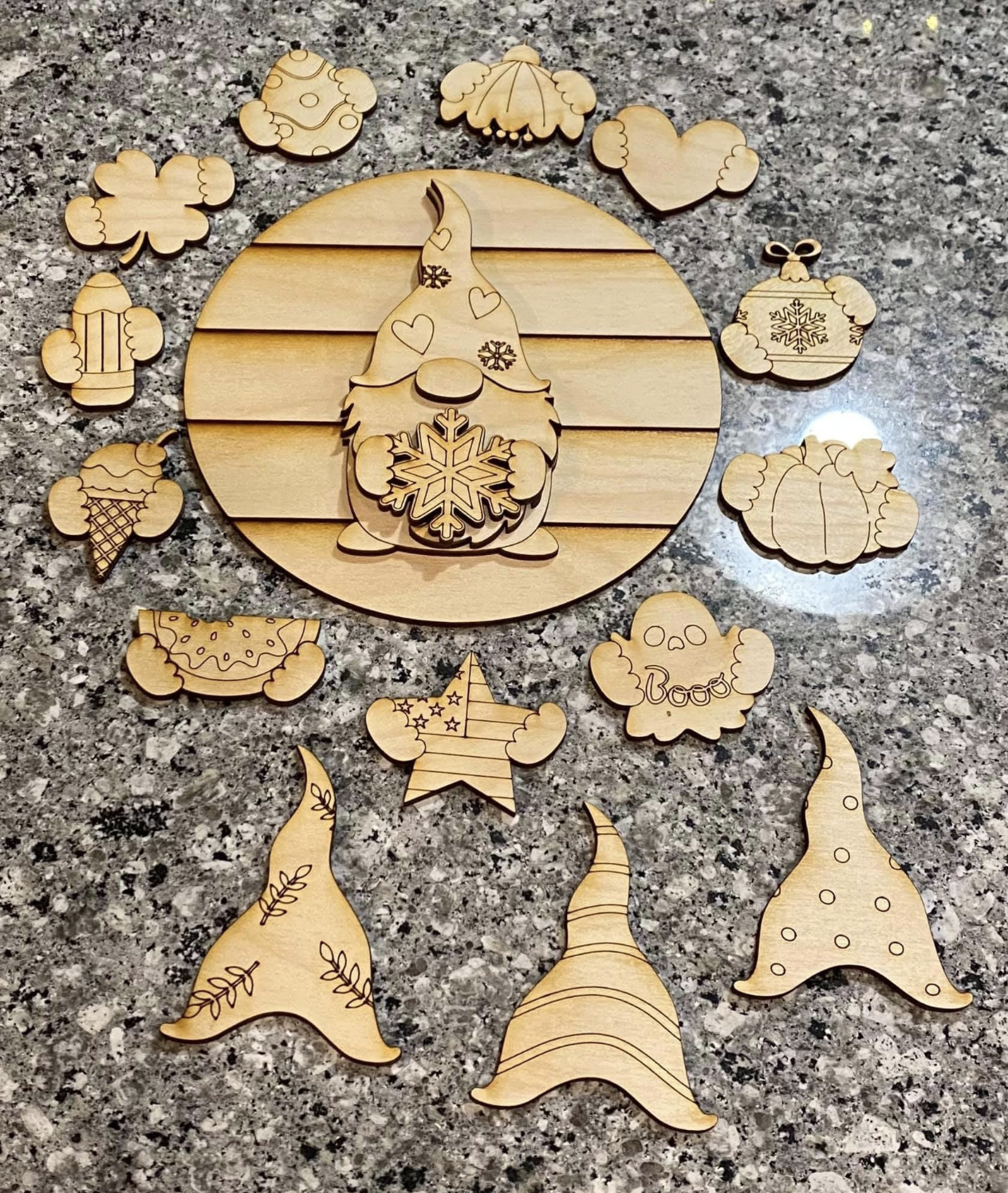 This Unfinished Interchangeable Gnome Kit is a fantastic way to channel your creativity and enjoy the satisfaction of crafting something special. Create gnomes that reflect your personality and style with our high-quality, laser-cut wood pieces, designed to spark your DIY spirit. Unleash your artistic side and assemble gnomes that bring joy to your home, year-round.