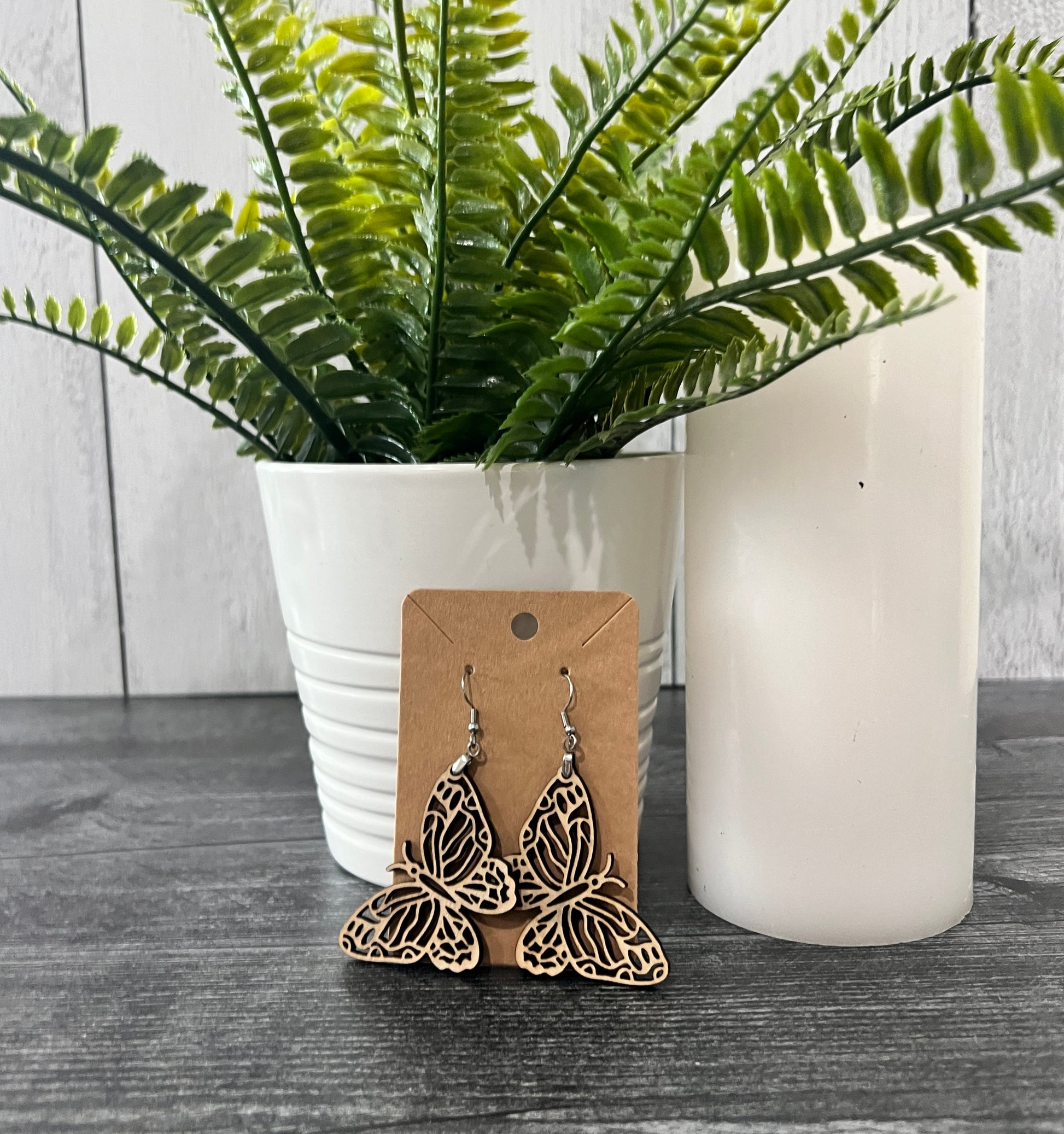 Introducing our exquisite Handcrafted Wooden Butterfly Earrings, a fusion of nature's beauty and artisan craftsmanship. These enchanting earrings are meticulously created to bring a touch of elegance and artistry to your jewelry collection, while also considering your comfort with hypo-allergenic hooks.
