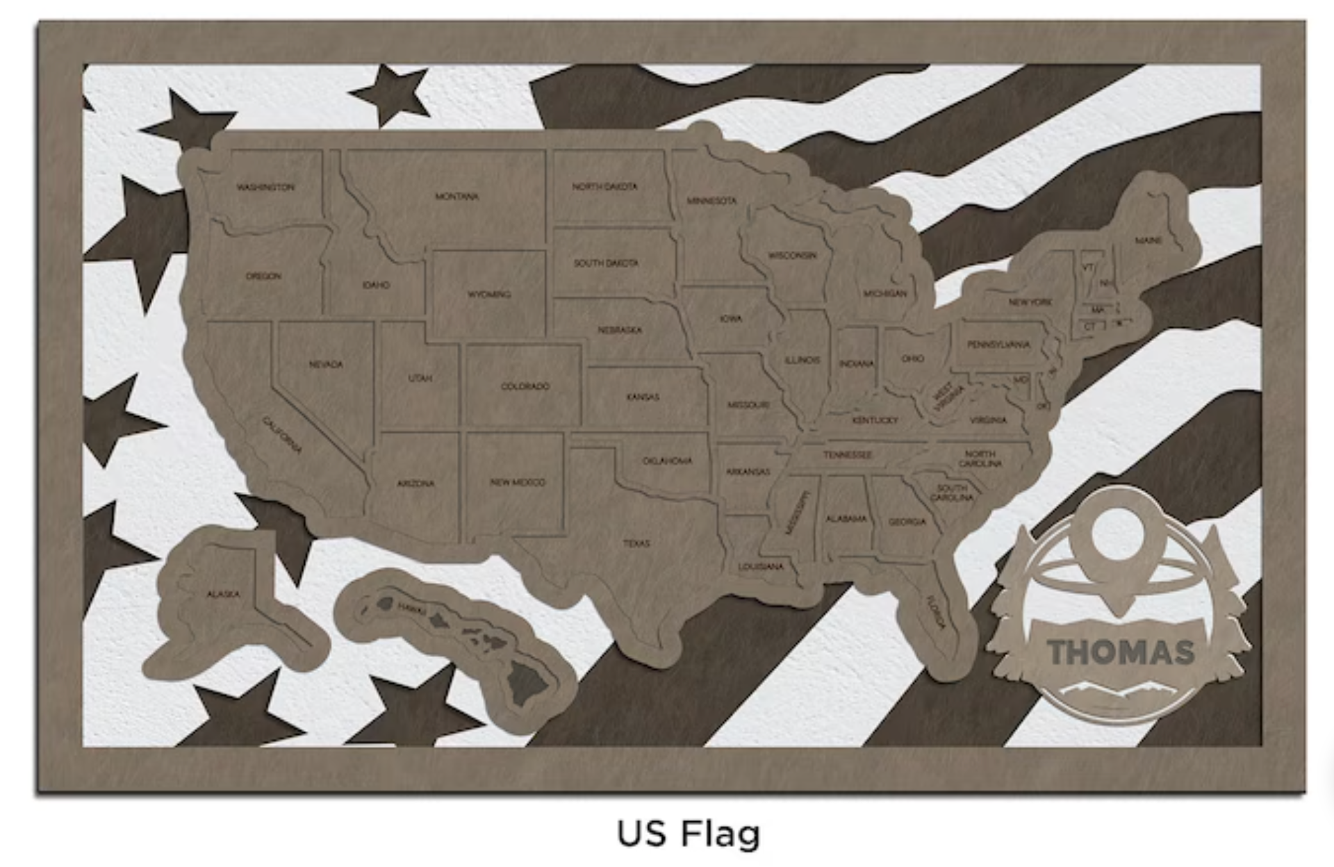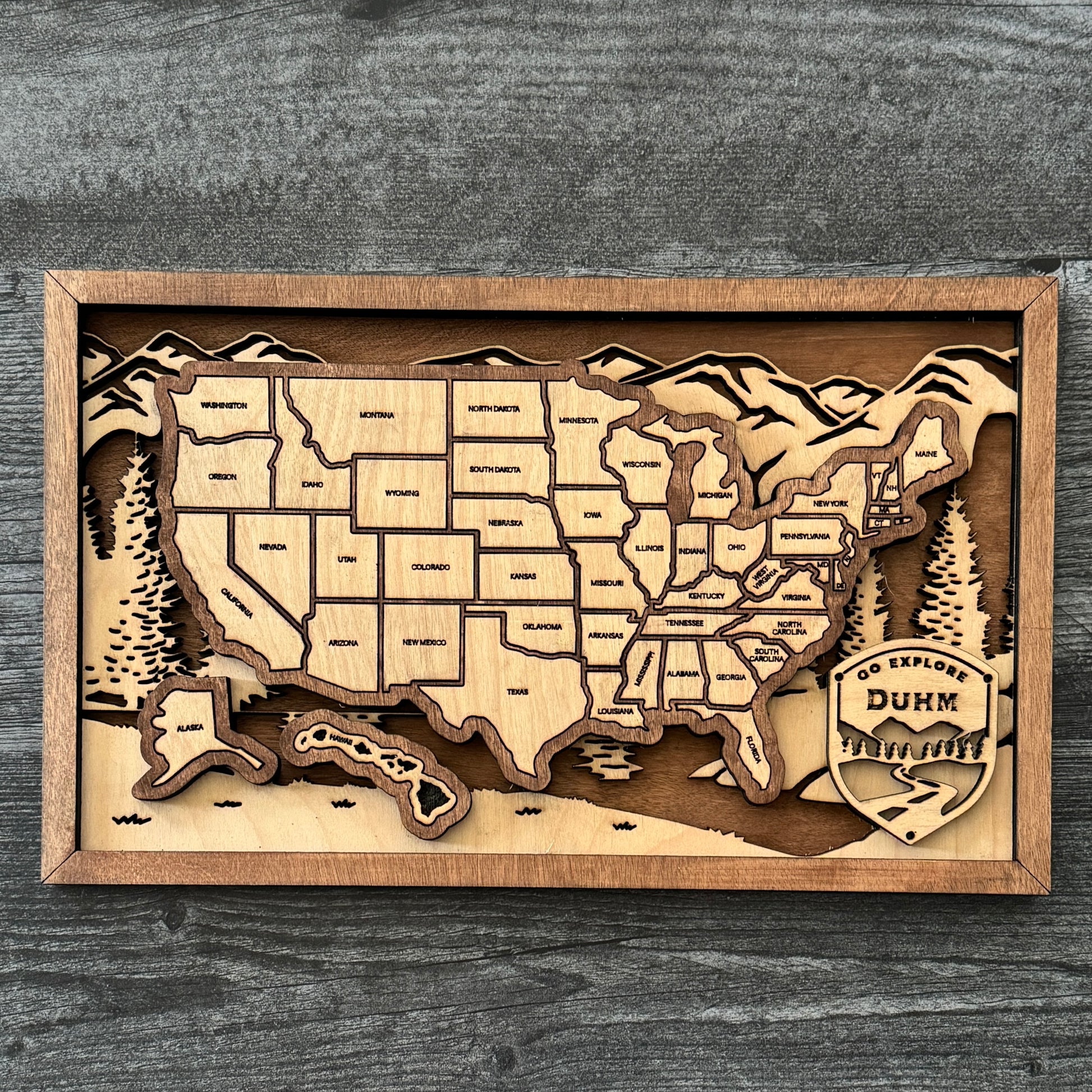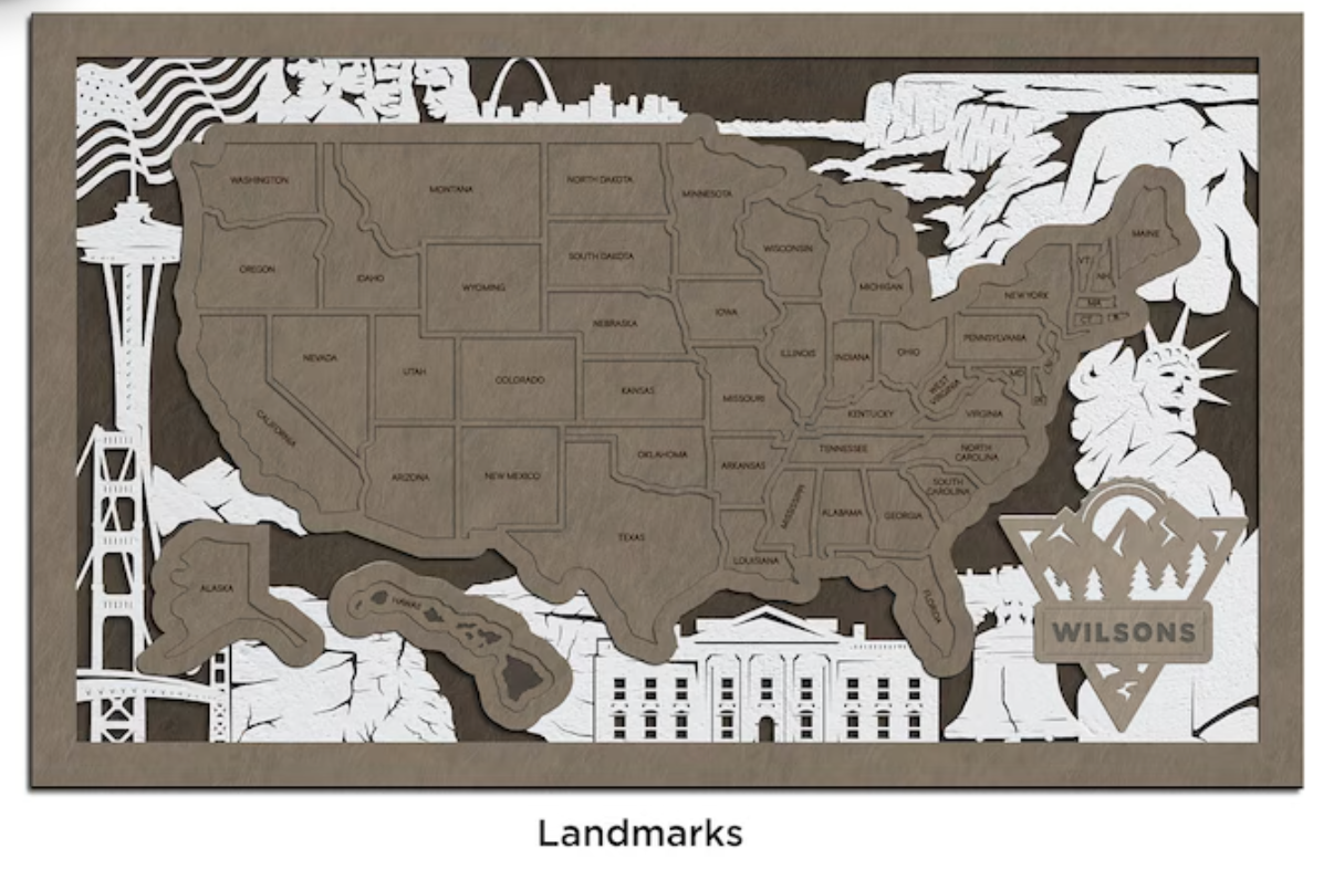 Measuring approximately 13.5" by 8.25", each layer represents different geographic features, providing a textured and visually captivating representation of the country. What sets this map apart is the opportunity to customize it with your family name on the name plate, making it uniquely yours.