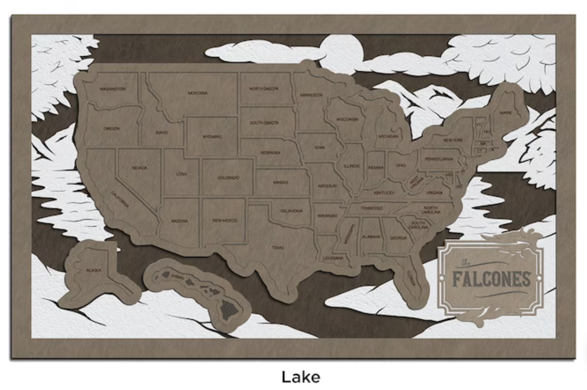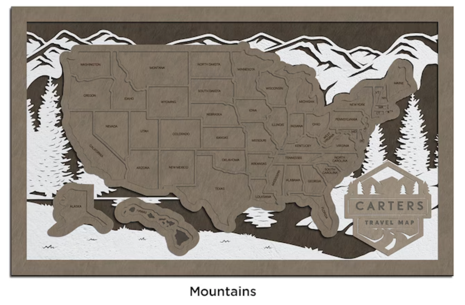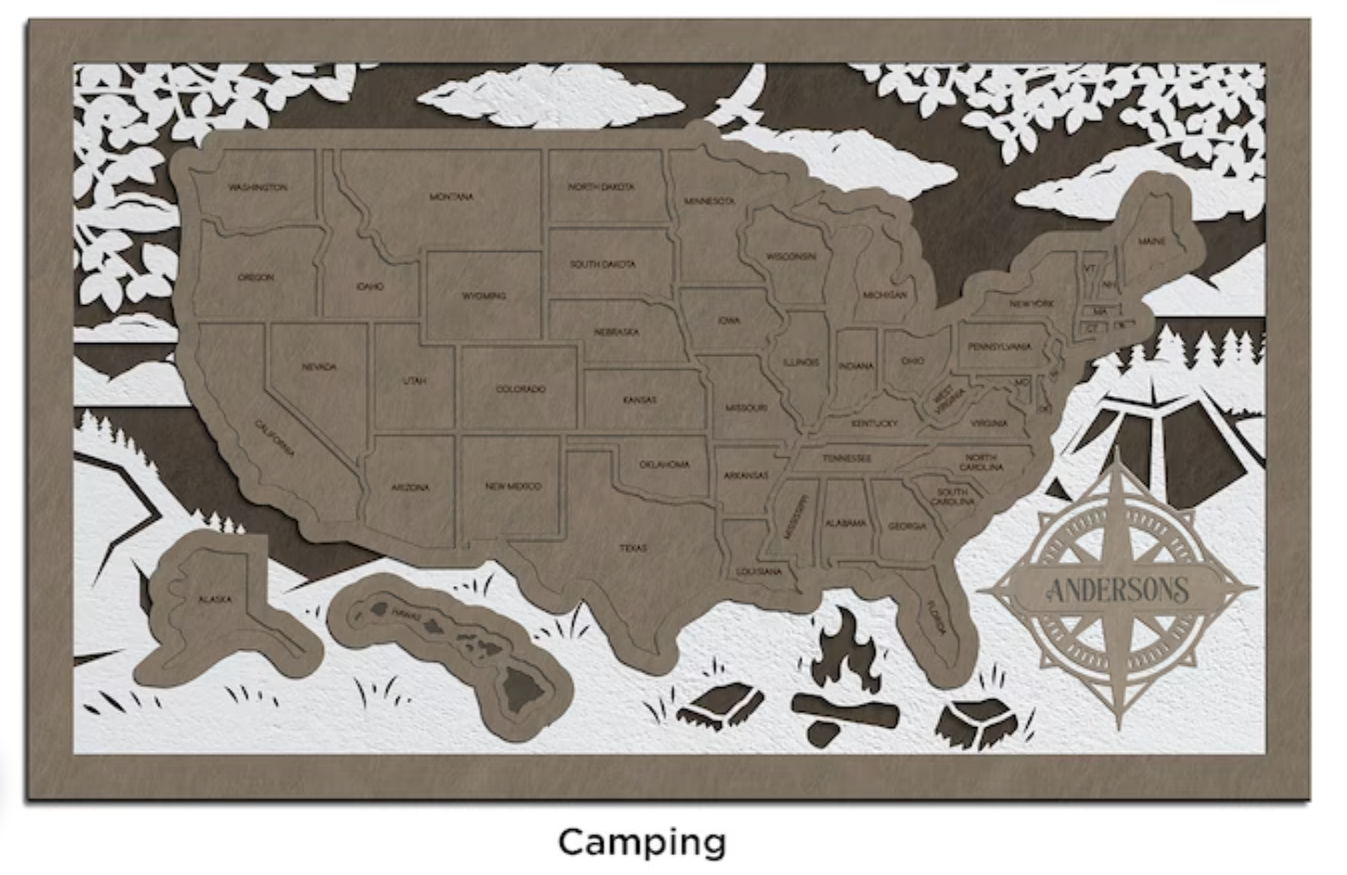Measuring approximately 13.5" by 8.25", each layer represents different geographic features, providing a textured and visually captivating representation of the country. What sets this map apart is the opportunity to customize it with your family name on the name plate, making it uniquely yours.