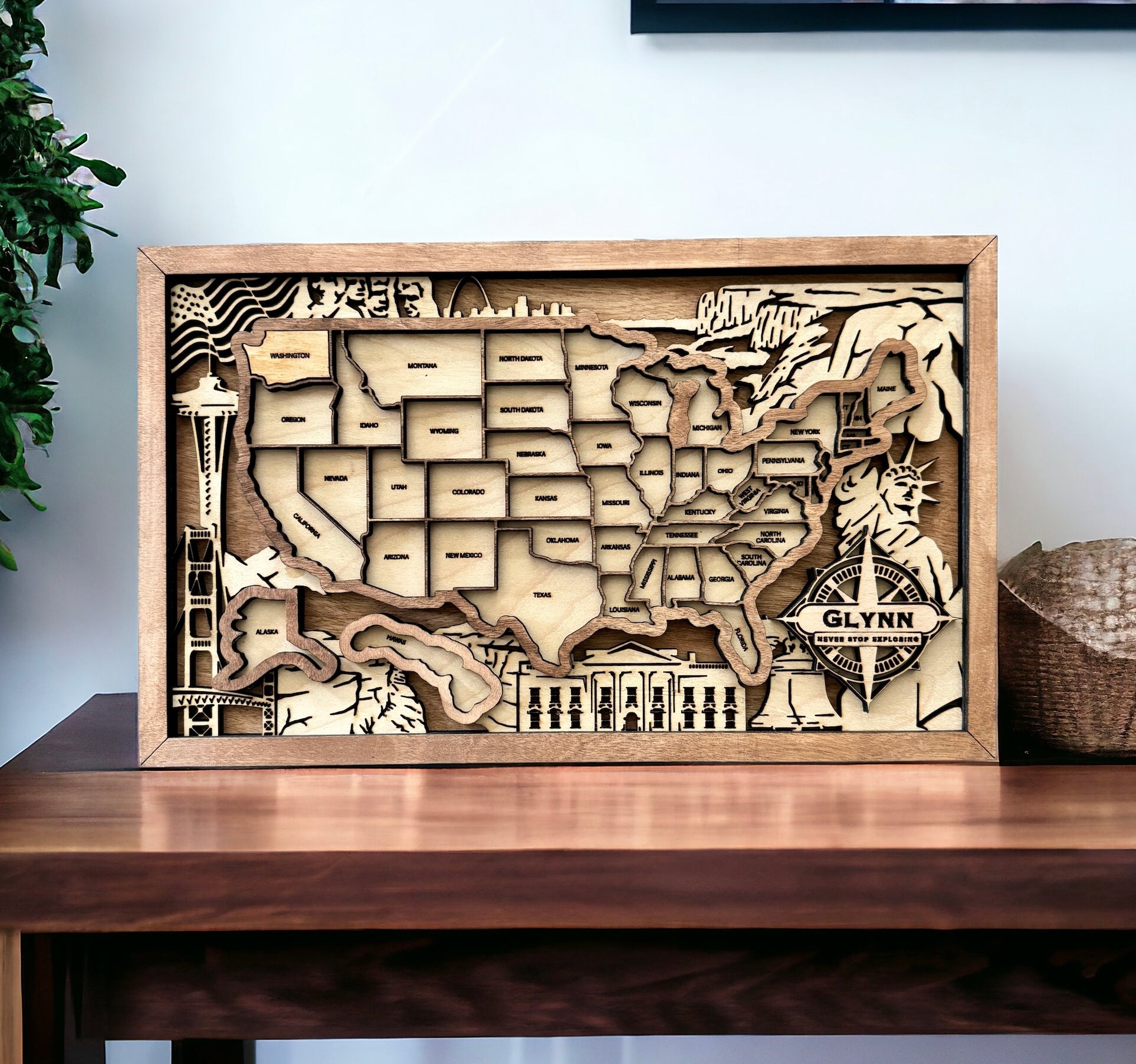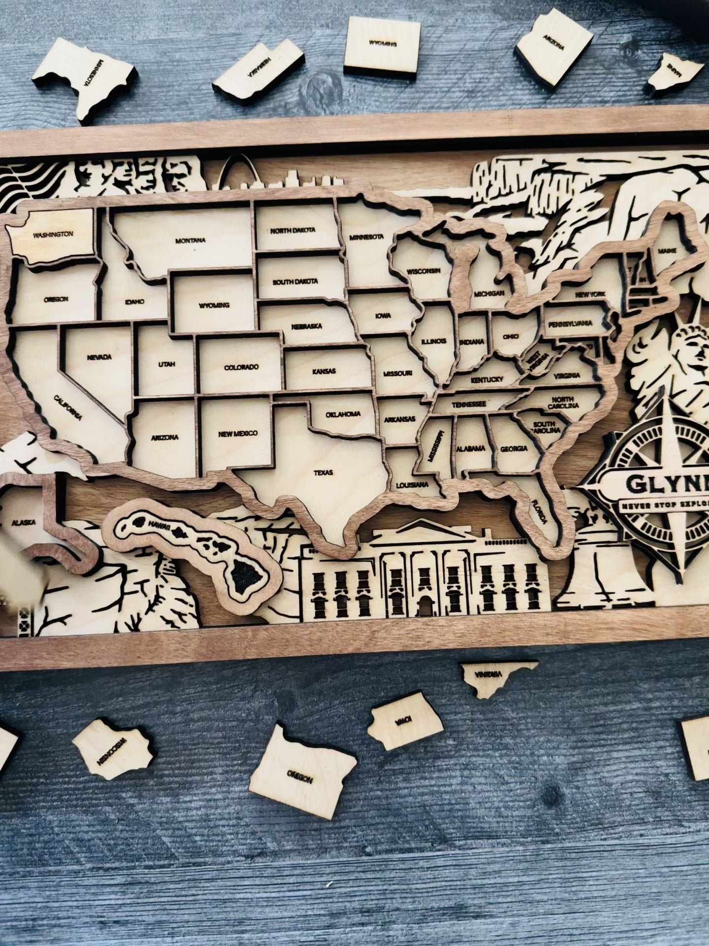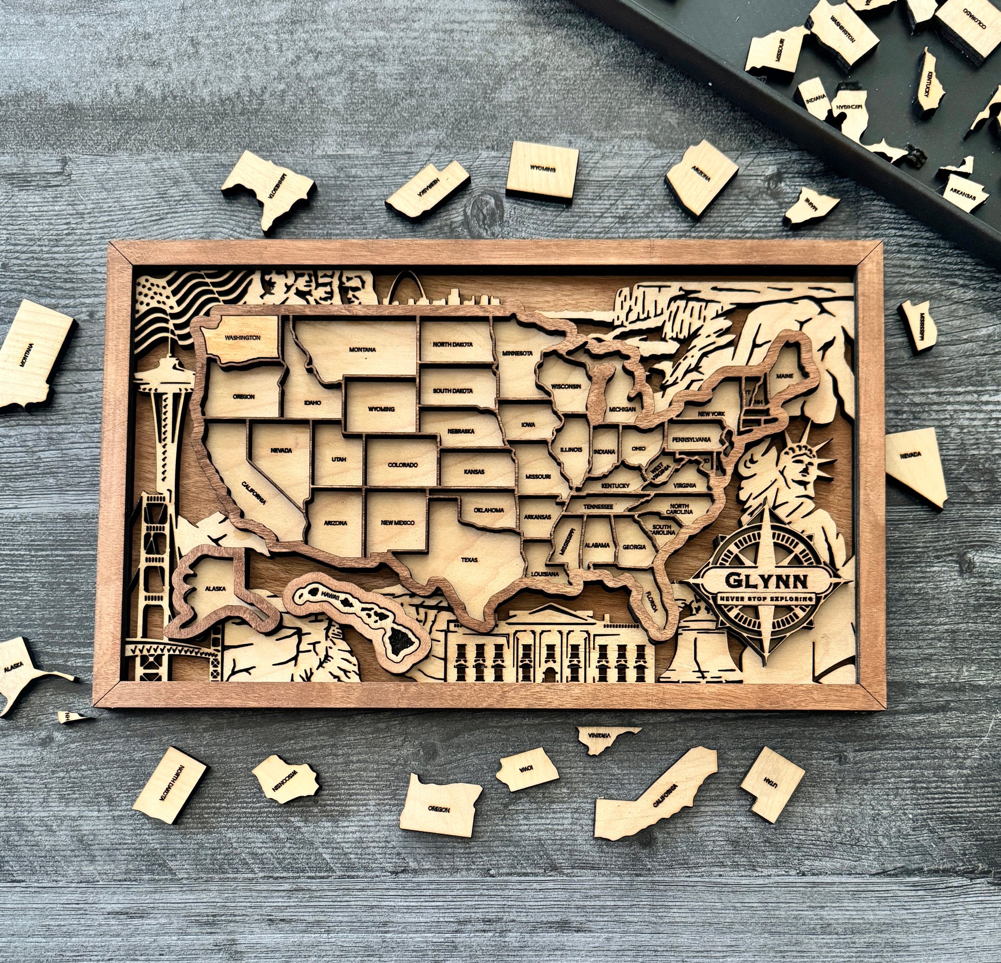 Embark on a journey of discovery with our interactive US Puzzle Map – not just a decor piece, but a dynamic experience. Crafted with precision through laser cutting from three layers of birch wood, this map allows you to piece together the puzzle of the United States.